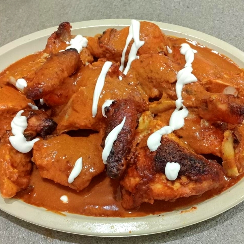 Aderezado con rodajas tomate, cebolla y chipotle en escabeche bañado en crema 1.400kg Incluye Arroz (200gr), salsa, tortillas (250gr) y Complemento del dia (Consome o Papitas a la diabla)
