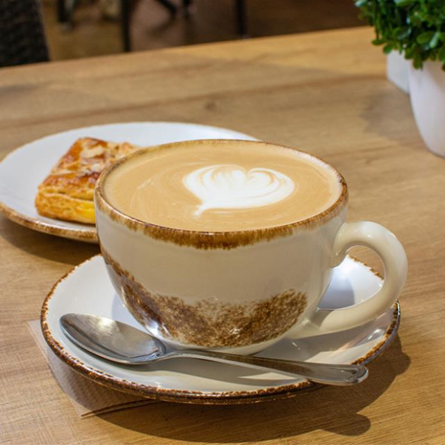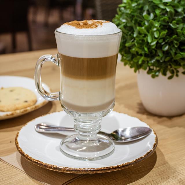 Espresso con leche vaporizada, con canela y endulzado con miel de abeja artesanal. Coronado con espuma cremosa y un toque de canela en polvo.