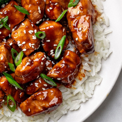 150gr de pollo a la plancha bañado con salsa teriyaki de la casa cobre un bowl de arroz gohan. terminado con cebollin y mix de ajonjoli