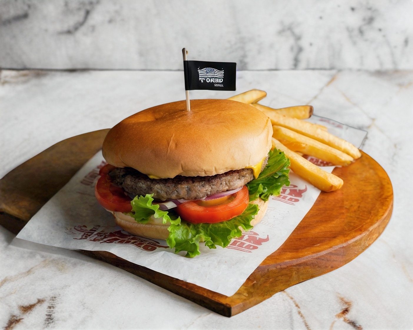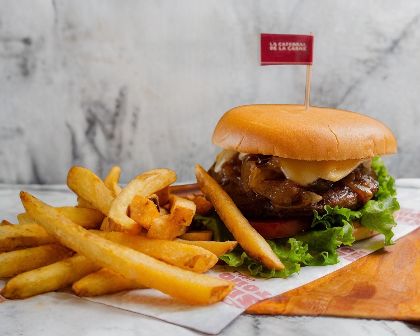 Jugosa carne 100 % black angus, pan brioche, lechuga y jitomate fresco. Todo esto coronado con queso brie derretido y una irresistible mermelada de cebolla. Acompañada de papas a la francesa.