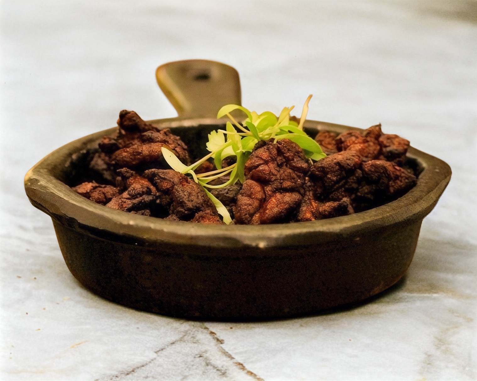 Suaves mollejas de res a la plancha. Marinadas en salsa negras acompañadas con tortillas de maíz y salsa taquera.