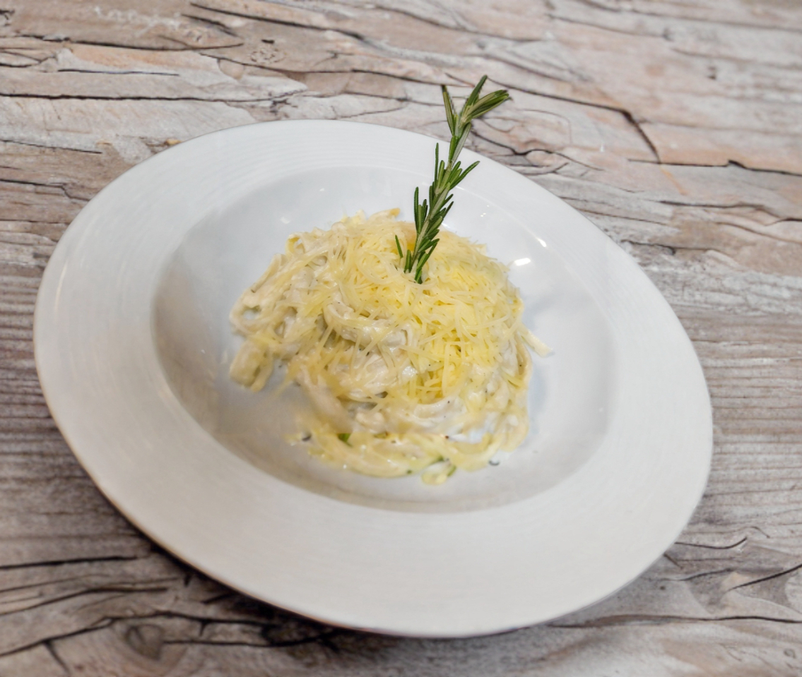 Clásica salsa cremosa de mantequilla y queso parmesano.