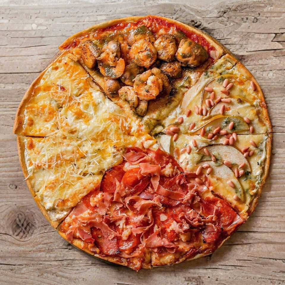 Personaliza tú pizza con 4 sabores gourmet elegir.