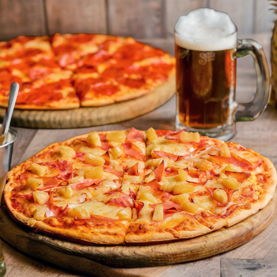 Personaliza tu pizza con 4 sabores clásicos a elegir.