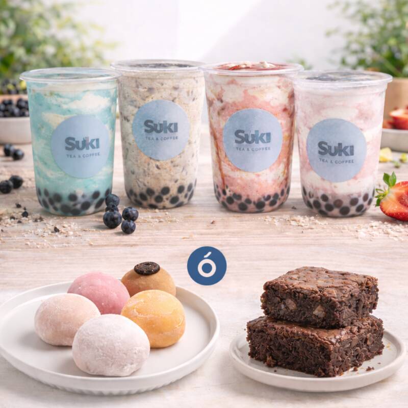 4 Bobas grandes base Leche + 4 Mochis ó 2 Brownies