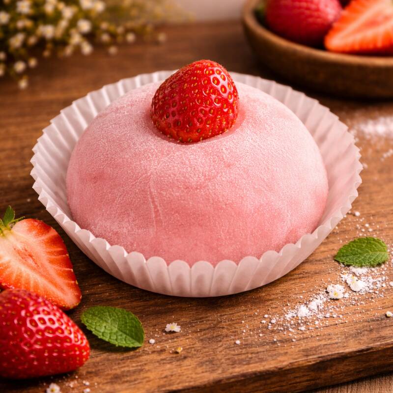 Dulce Japones hecho de arroz glutinoso y relleno de crema de sabor que puede ser: oreo, taro, fresa, mora azul, mango, manzana verder, mazapán y zarzamora
