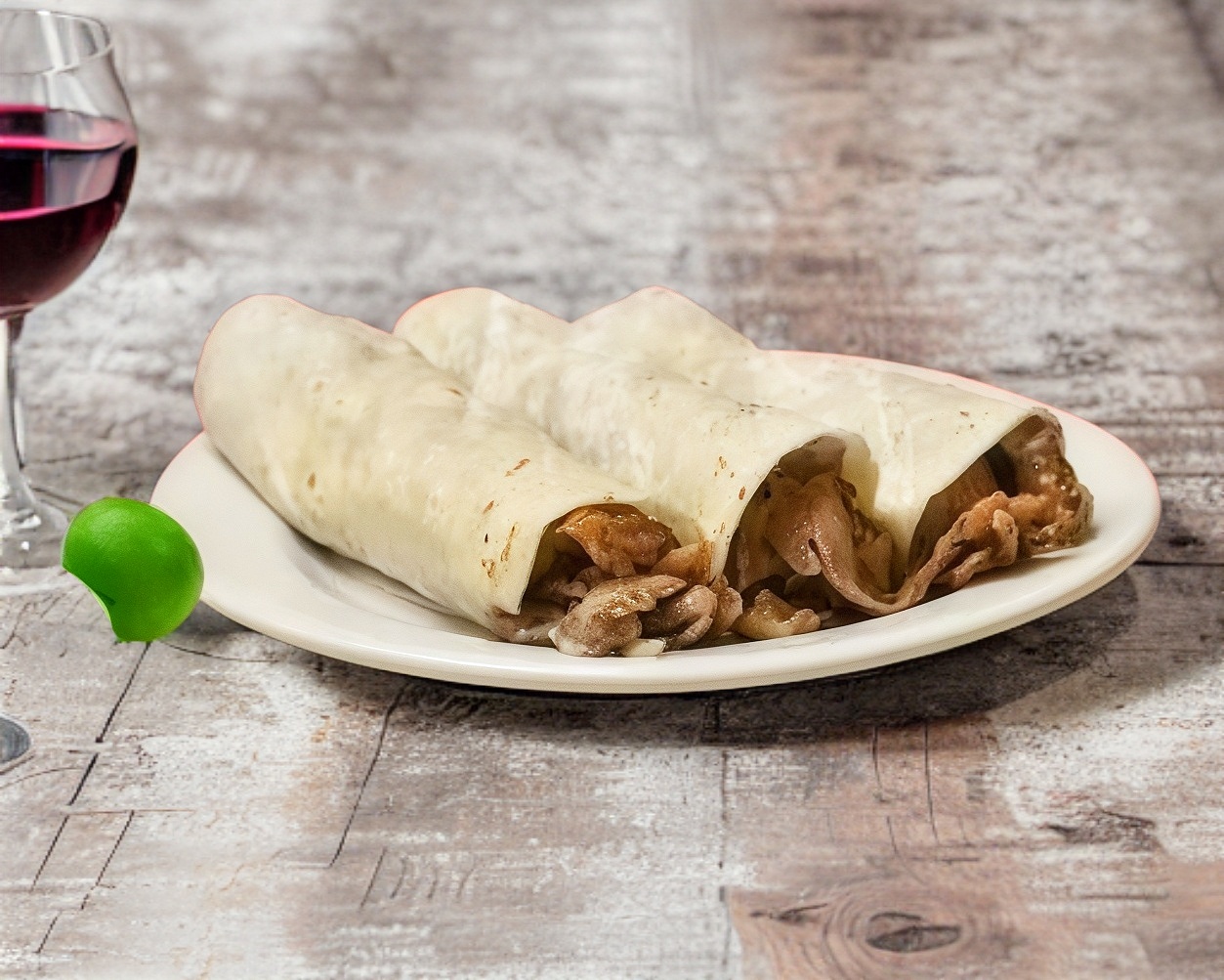 Taco Oriental ( 1 pieza), Carne árabe con queso gratinado, salsas ( van por aparte)