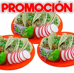 Promoción 3 órdenes de pastor (5 tacos por orden).