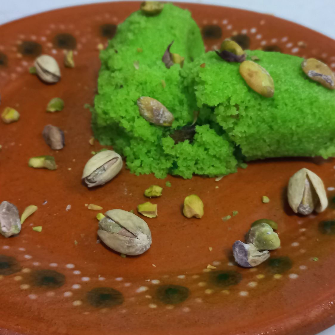 Tamal de dulce sabor rompope con relleno de crema pastelera.