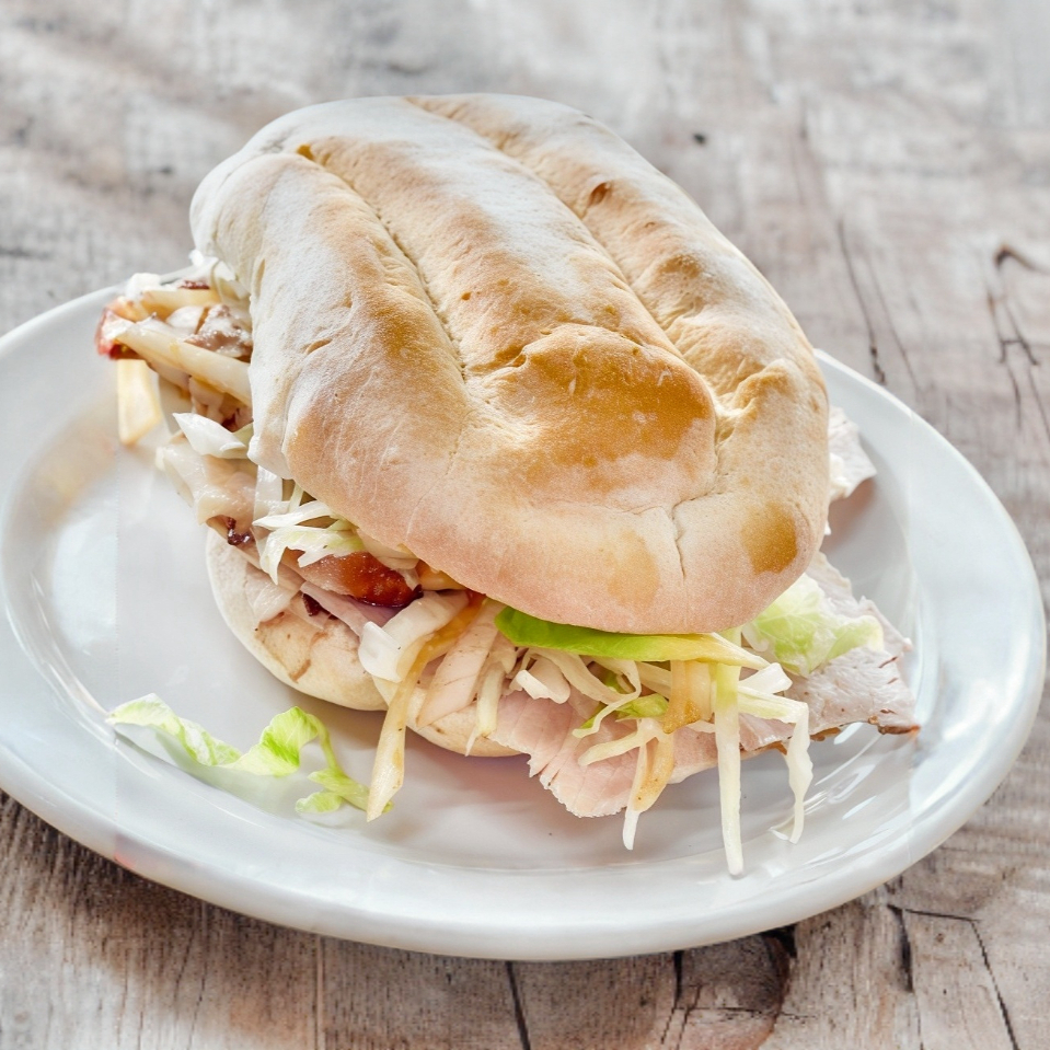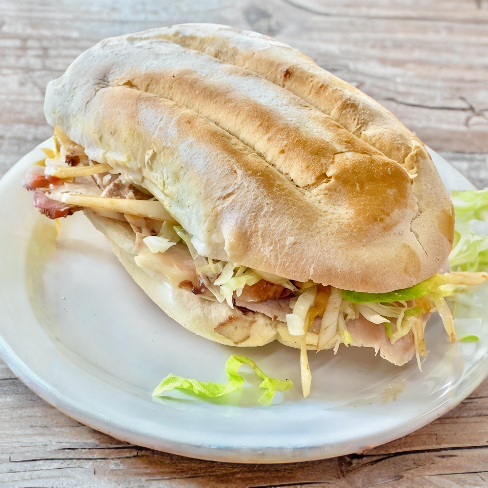 Nuestra torta esta elaborada con carne al pastor, pierna, queso de hebra, queso amarillo, jamón, lechuga, frijoles, mayonesa, cebolla y aguacate.