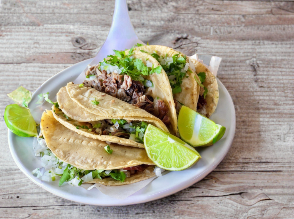 Tortilla de harina, queso manchego, cebolla, cilantro y bisteck de res.