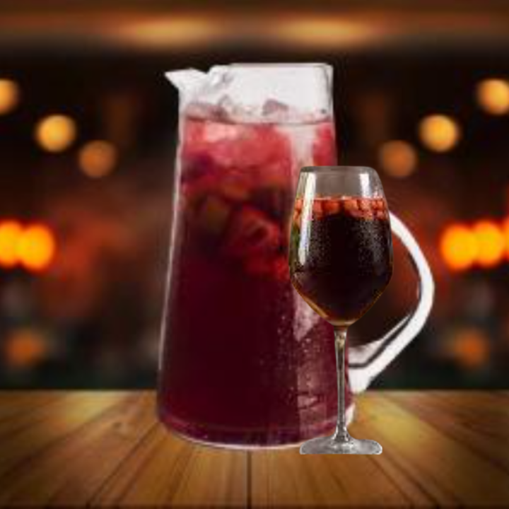 Clericot refrescante preparado con vino tinto, frutas frescas picada, granadina, refresco, y un toque de jugo de naraja y limón disponible en copa (1/2 L) o jarra (2 L). Ideal para compartir y disfrutar en buena compañía.