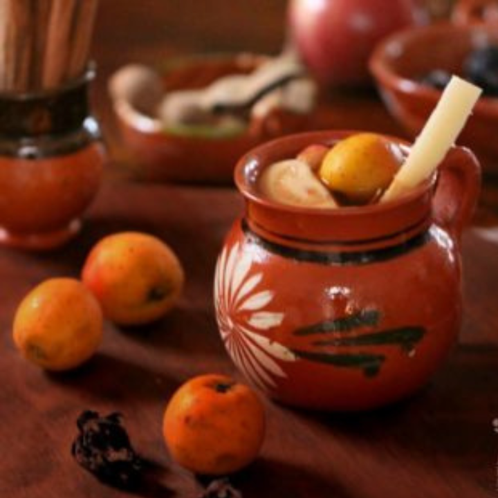 Bebida caliente de temporada preparada con tejocote, manzana, guayaba, piña, caña y canela. Disponible en 300 ml o por litro.