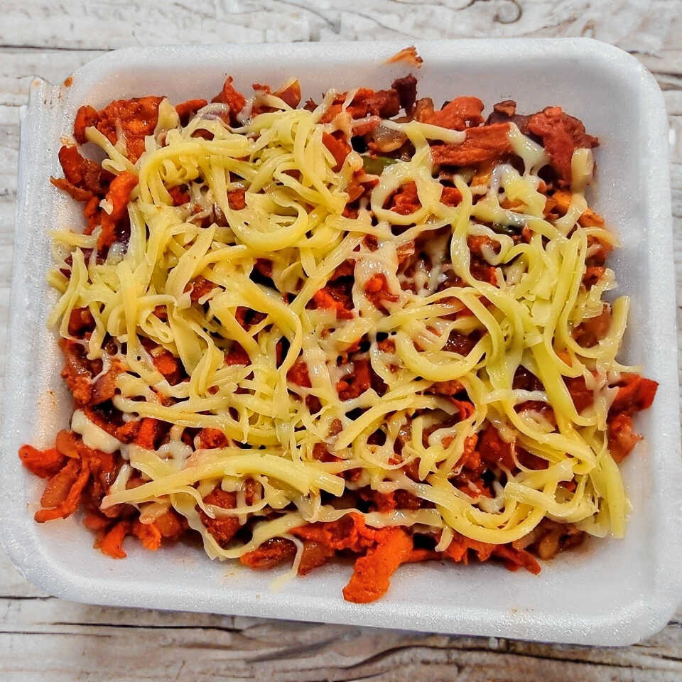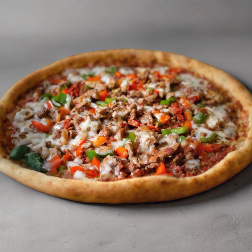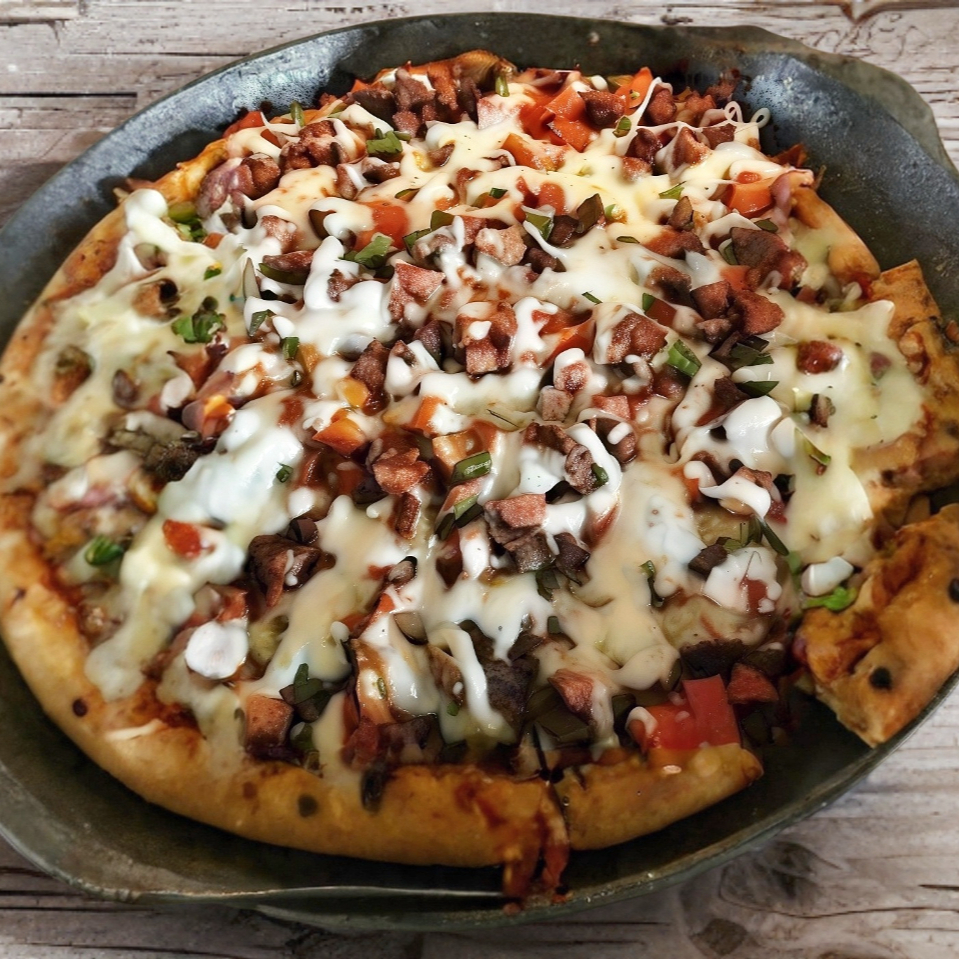 Matahambre contiene Chuleta al pastor, jamón de pavo, tocino, longaniza, cebolla, chile poblano, jitomate y queso manchego