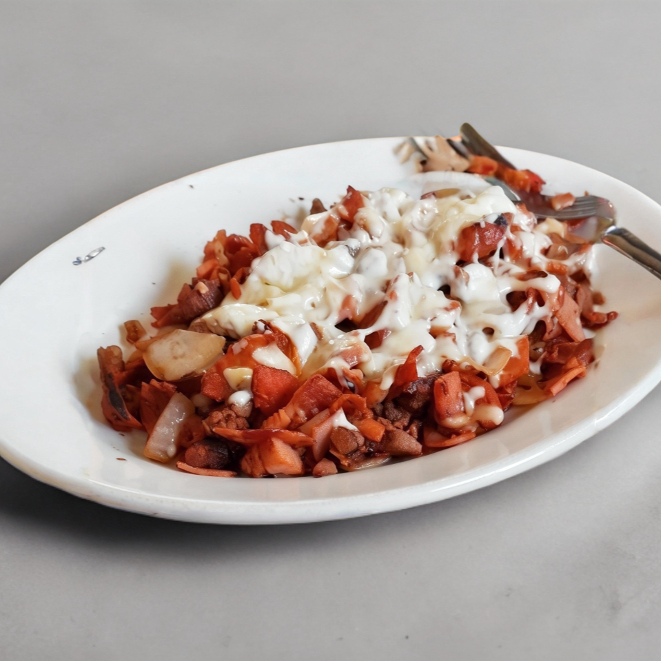Cebolla poblano jamon tocino longaniza jitomate carne al pastor chuleta y queso