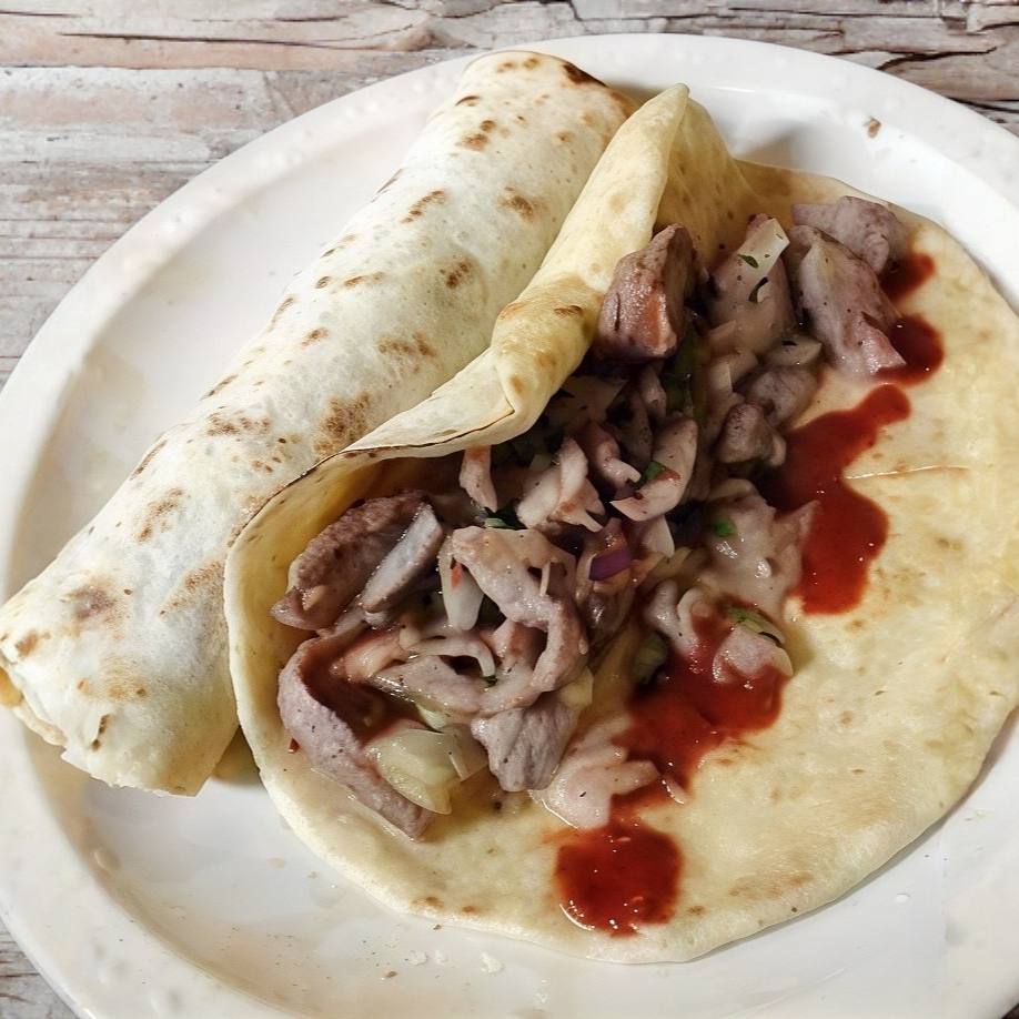 1 Pieza. 1 tortilla pan árabe , carne árabe , queso manchego, limones y salsa