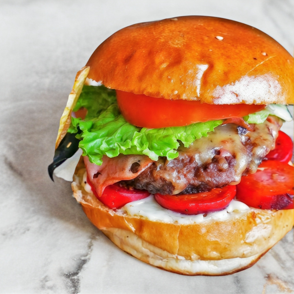 Preparada con 300 g de carne de res, tocino, queso americano y queso gouda.
