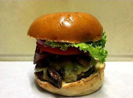 Preparada con 150 g de carne de res, tocino, champiñones a la plancha y queso gouda.