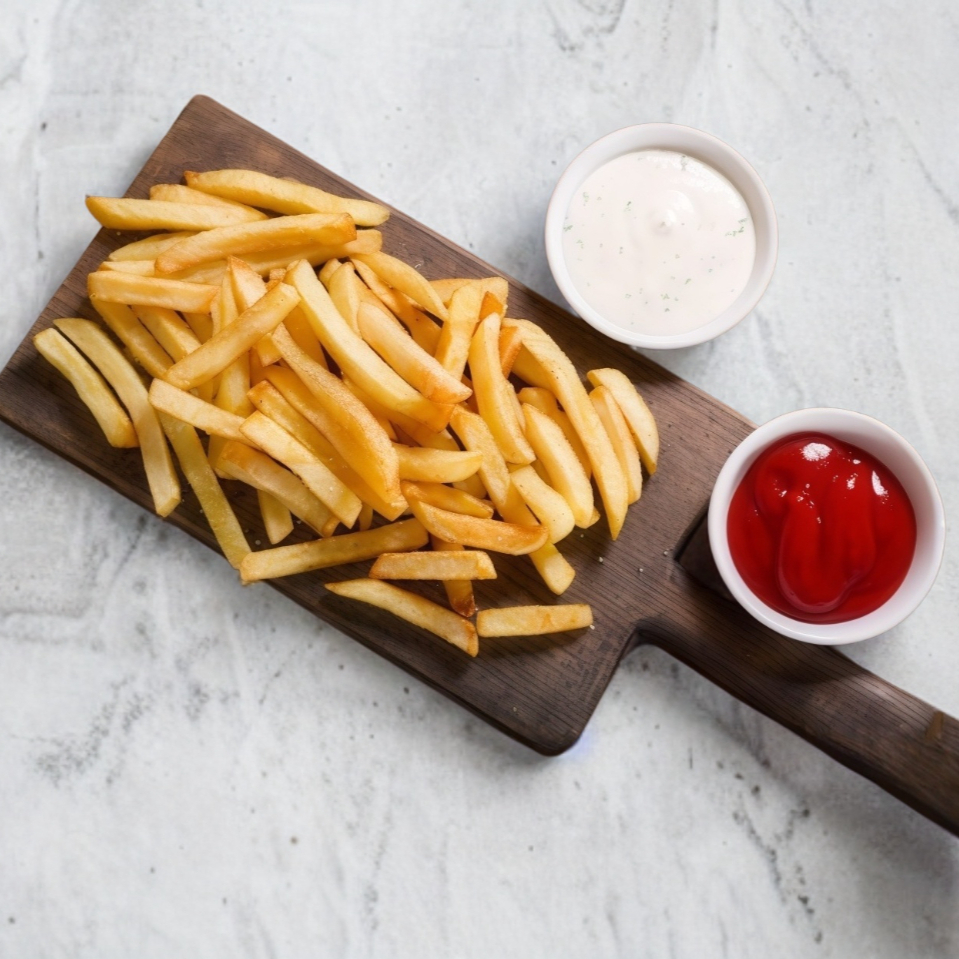 Con papas a la francesa.