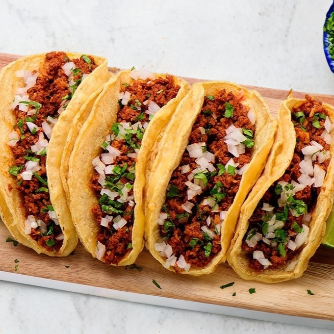 Orden de 5 tacos orientales. puedes acompañar con cebolla, cilantro, piña, limones, salsa y 1 aditamento: cebollines, rabanos, pepinos o nopales (sujeto a disponibilidad)