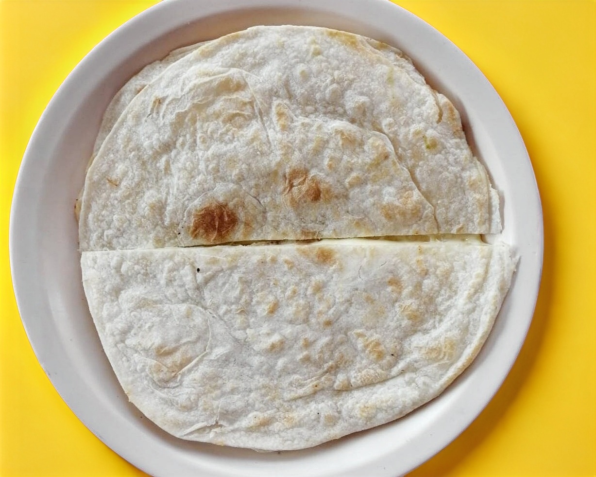 4 tortillas de harina con queso fundido y 4 rebanadas de jamón