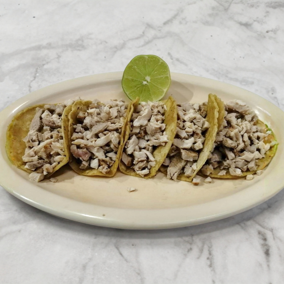 Orden de 5 tacos de chuleta.incluye limones, salsa y 1 aditamento: cebollines, rabanos, pepinos o nopales (sujeto a disponibilidad)