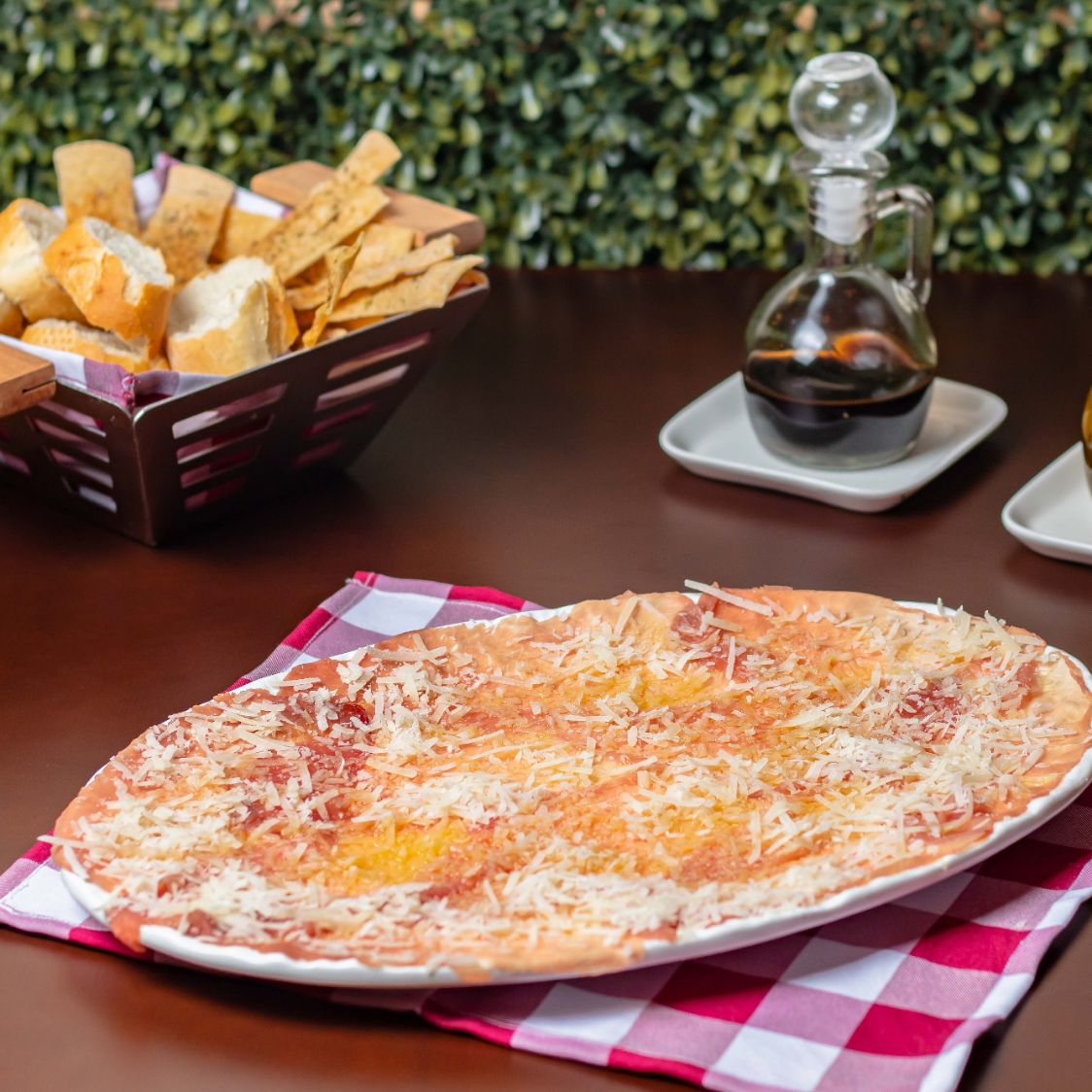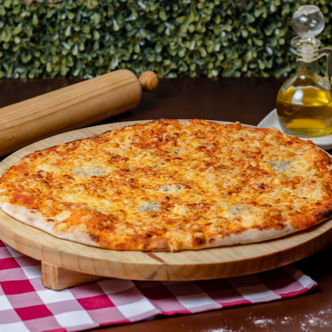 Pomodoro, queso parmesano, roquefort, mozarella y gouda.