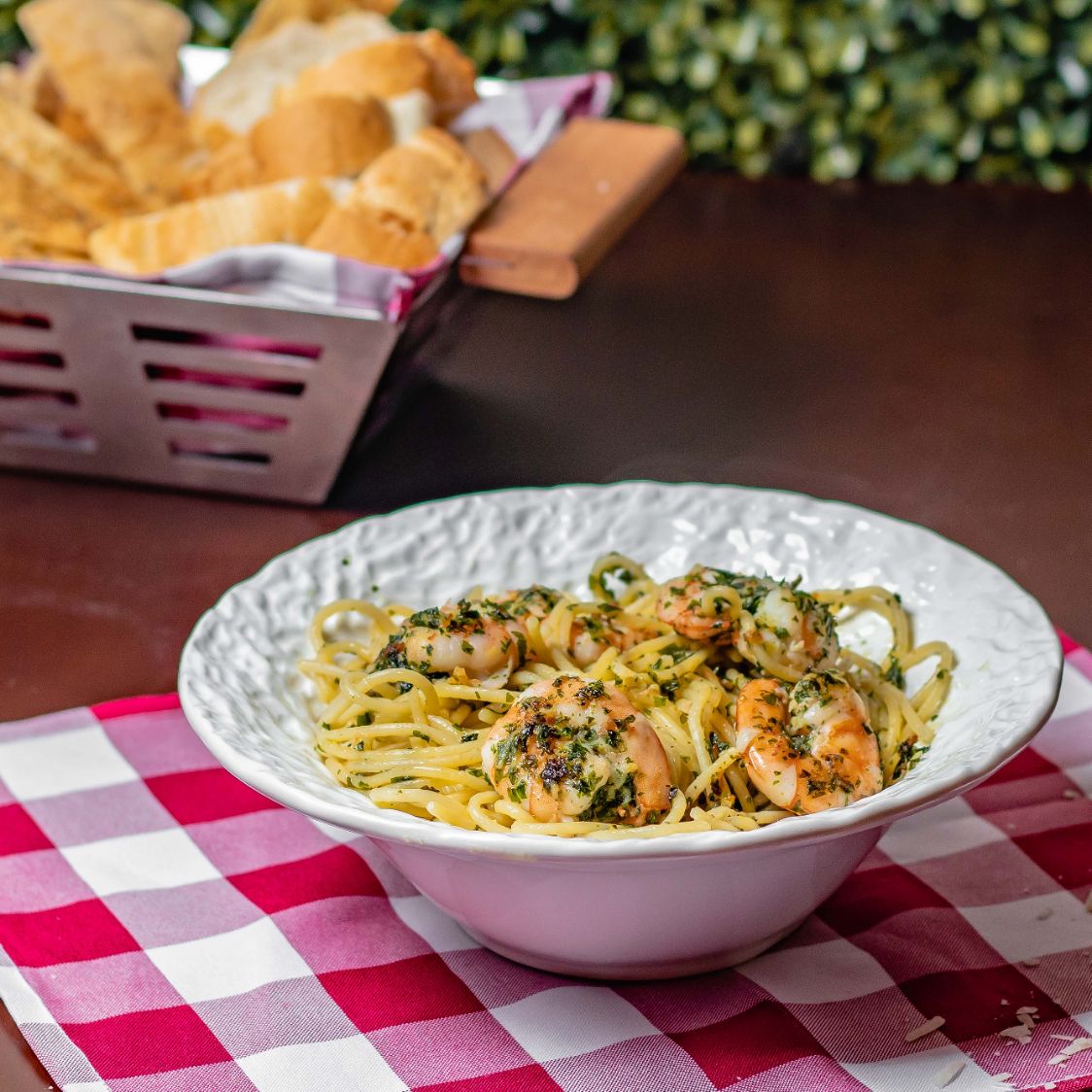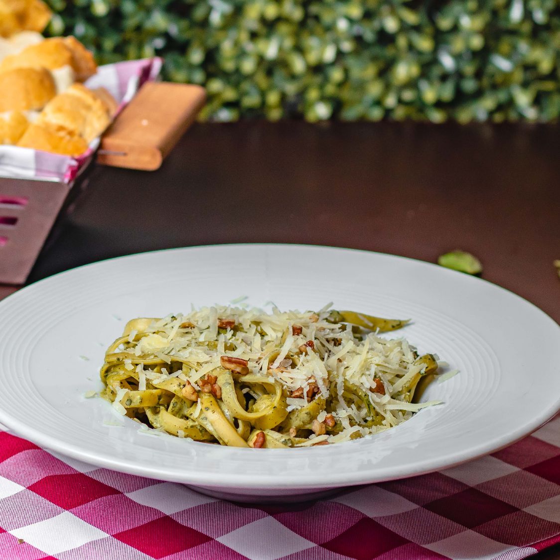 Delicada salsa de albahaca, crema y nuez con queso parmesano.