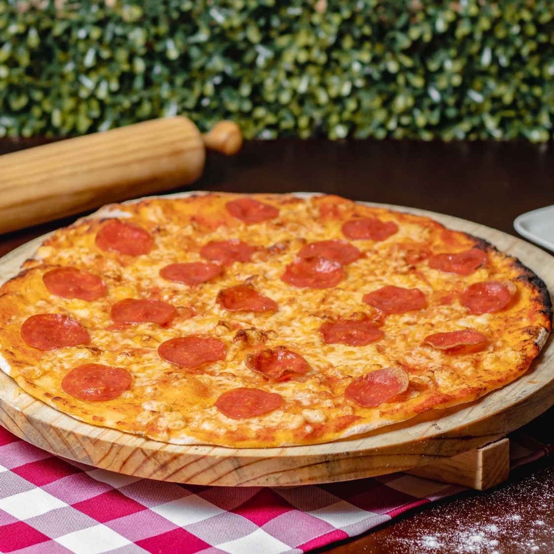 Pomodoro, queso y combinacion de carnes frias: jamón horneado, salame y pepperoni