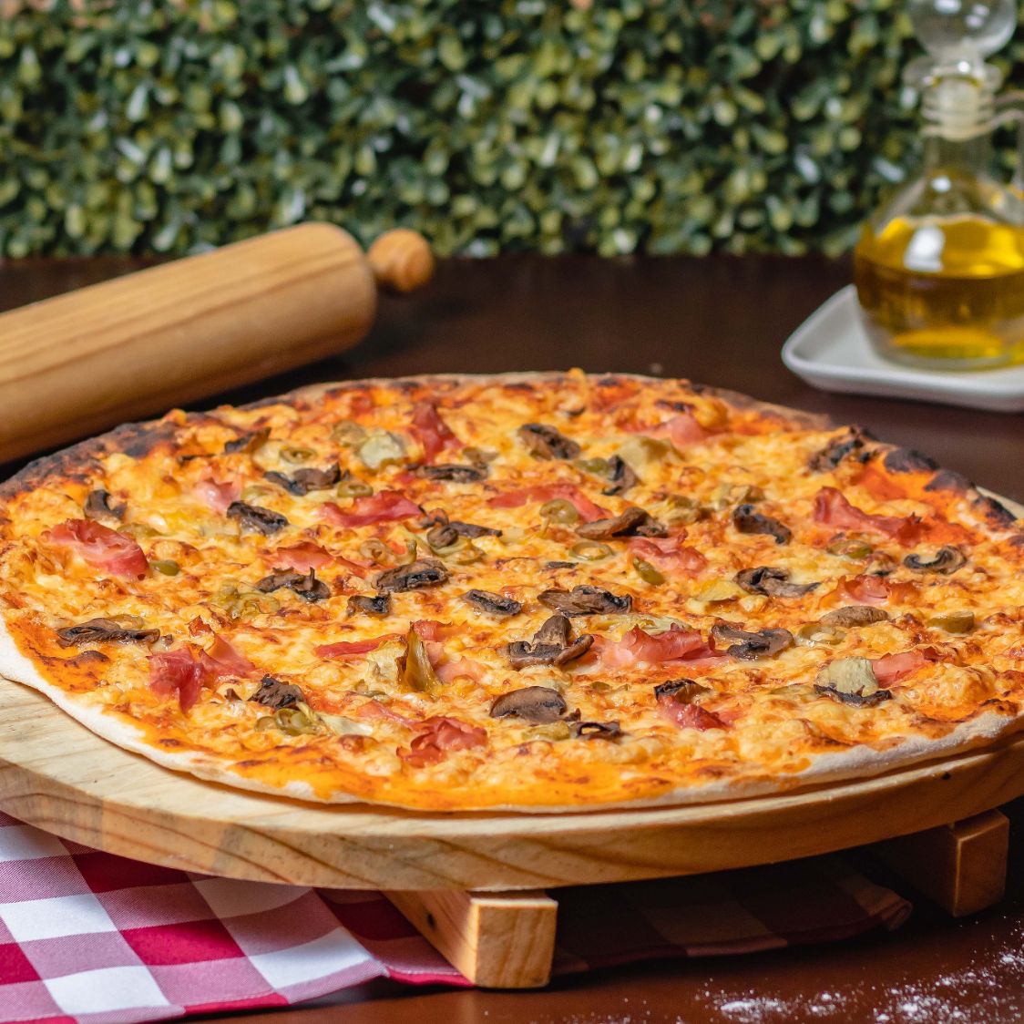 Pomodoro, queso, pimiento, alcachofa, champiñones y aceitunas.