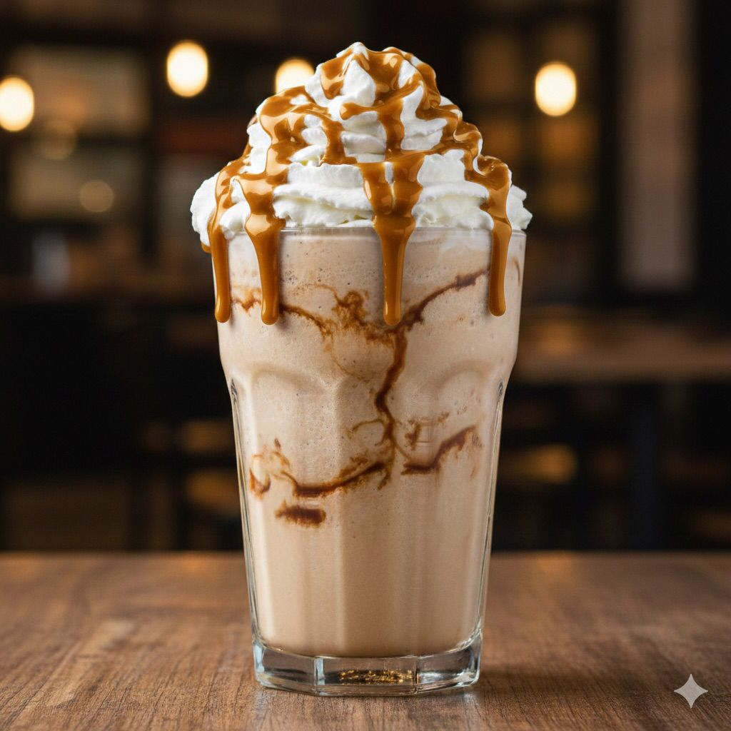 El frappé de cajeta es una bebida fría, cremosa y sumamente indulgente, ideal para los amantes de los sabores dulces. Se elabora con hielo triturado, leche fría y cajeta suave, licuados hasta lograr una textura espesa.