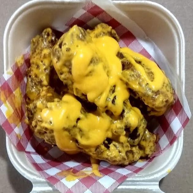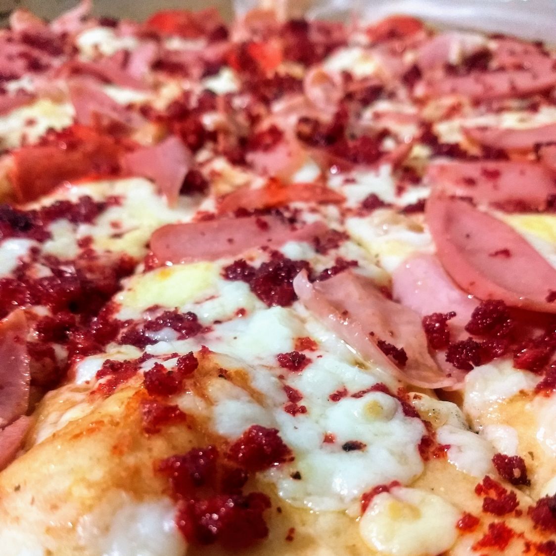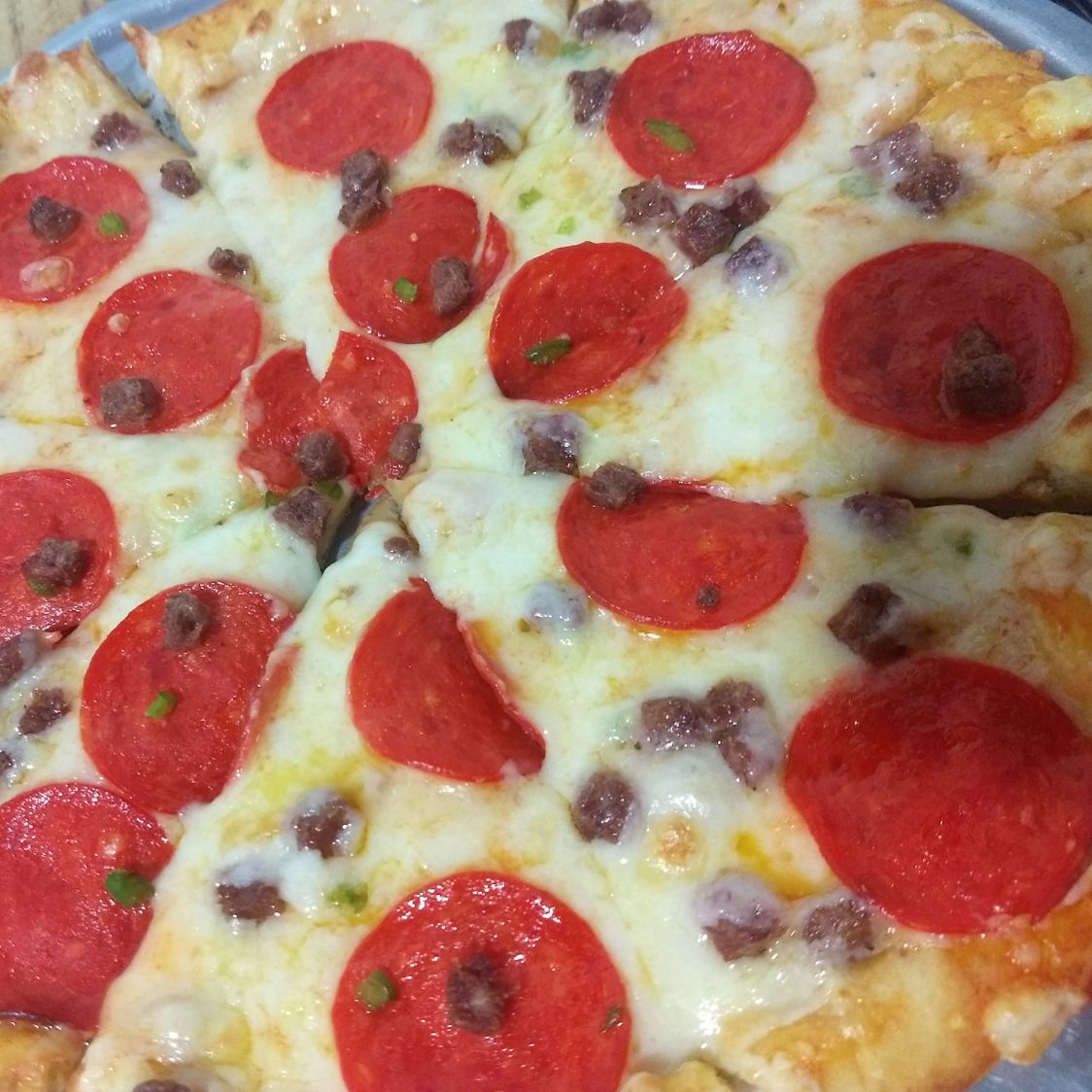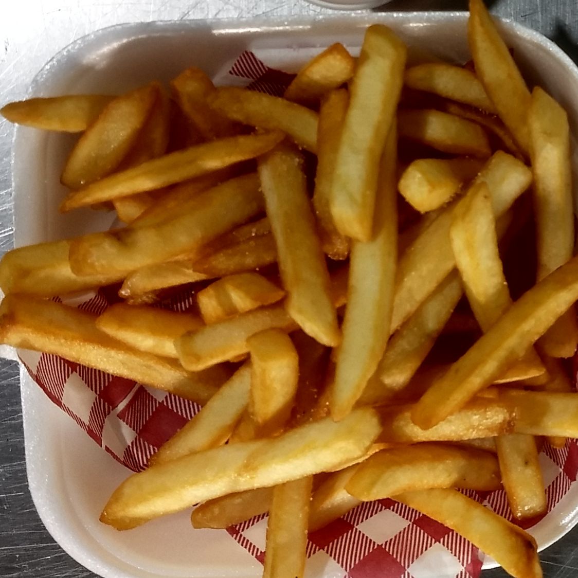Jamón, peperoni, tocino y queso asadero, incluye papas a la francesa.