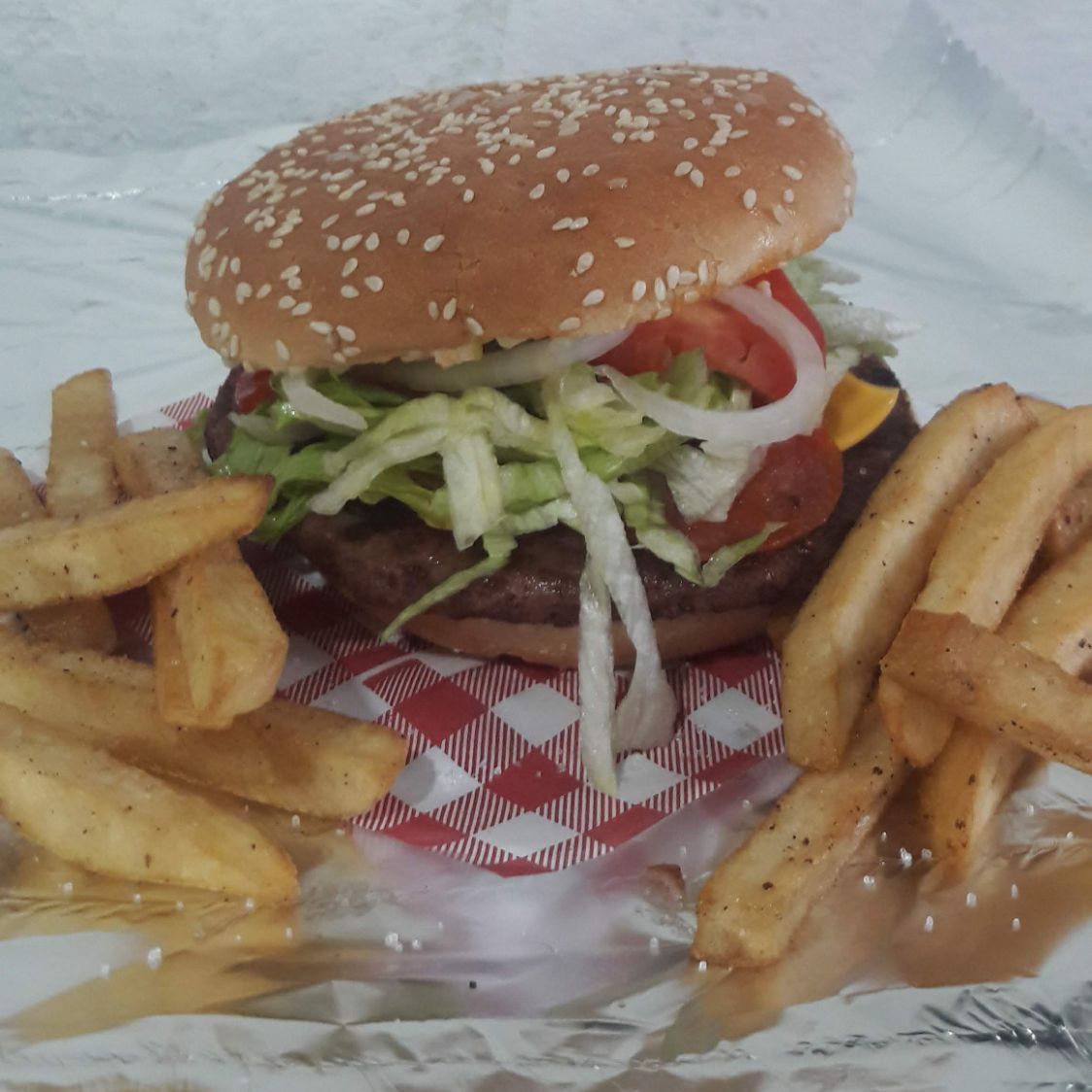 Hamburguesa sencilla, papas a la francesa y refresco 400 ml.