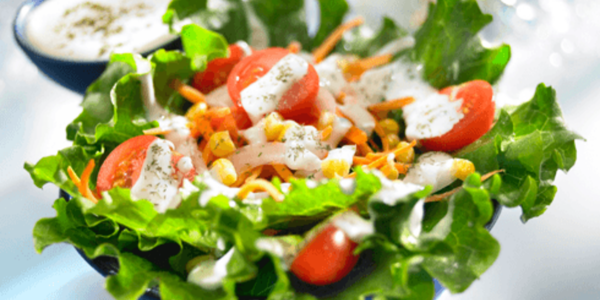 A base de lechuga con fajitas de pollo a la plancha o atún, tomates rojos, cebolla y aguacate.