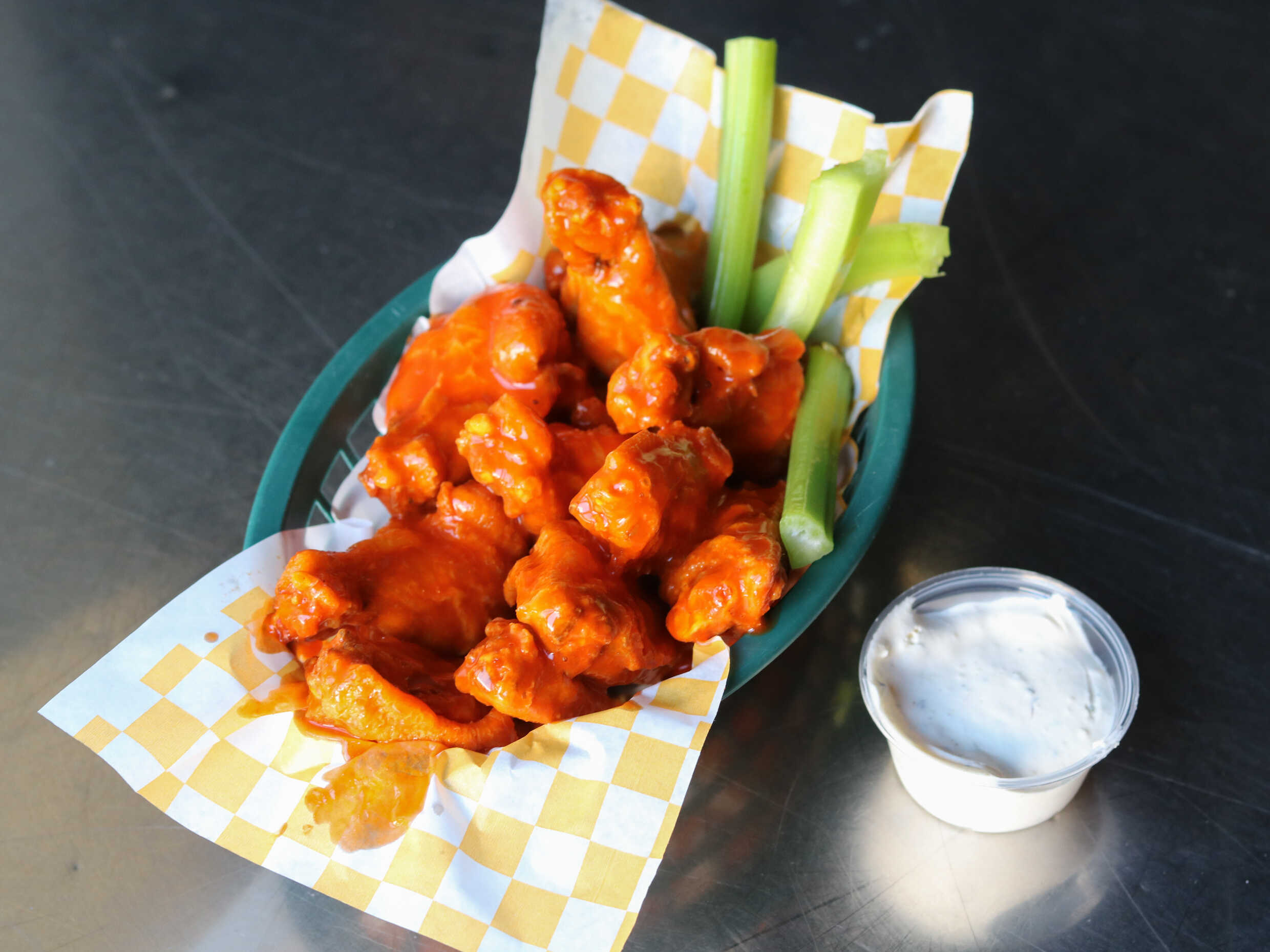 (Dedos de Queso 6 Pzs o Aros de Cebolla 10 Pzs + Vegetales 160g. Cada Orden de Alitas o Boneless Contiene 2 Oz de Dip Ranch o Blue Cheese, Cambia Tus Alitas por Boneless 440g)