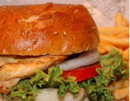 Pechuga de pollo grill,cebolla, tomate, lechuga y queso amarillo, 150 gramos, de pechuga de pollo, y 130 gramos de papa
