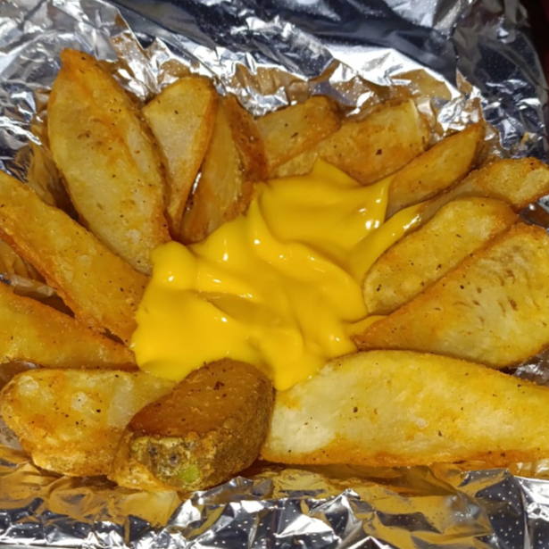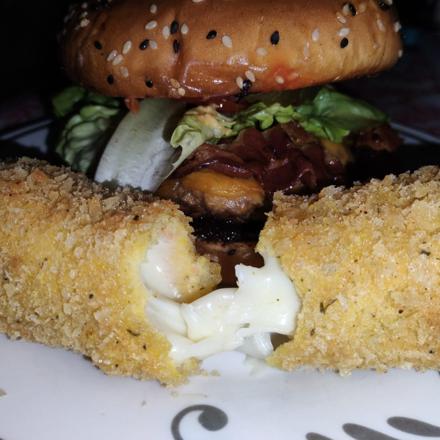 Hotdog de la casa con nuestra salsa especial, aros de cebolla caramelizada,queso mozarella , jitomate,mostaza, catsup