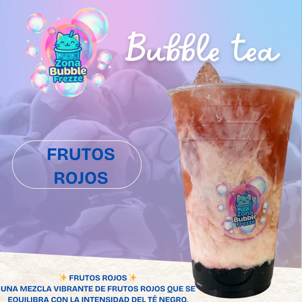 Una mezcla vibrante de frutos rojos que se equilibra con la intensidad del te negro suavizada por la cremosidad de la leche y acompañada de divertidas perlas de tapioca refrescante colorida y llena de sabor