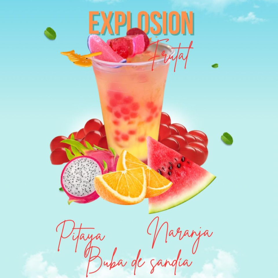 ¡Una mezcla que estalla en sabor! Pitaya vibrante, jugo natural de naranja y bubas de sandía se fusionan en un refrescante toque de agua mineral. Frutal, colorida y burbujeante… ¡explota de frescura!