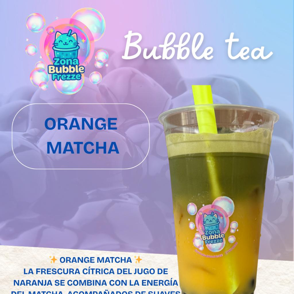 La frescura cítrica del jugo de naranja se combina con la energía del matcha acompañados de suaves perlas de tapioca y un delicado toque de miel una mezcla vibrante dulce y revitalizante