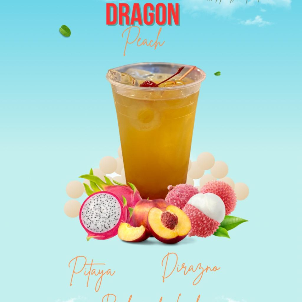 ¡Un combo mágico de frescura y sabor! Pitaya vibrante, durazno dulce y bubas de lichi en un toque burbujeante con agua mineral. El detalle final: una cereza que corona este elixir frutal.