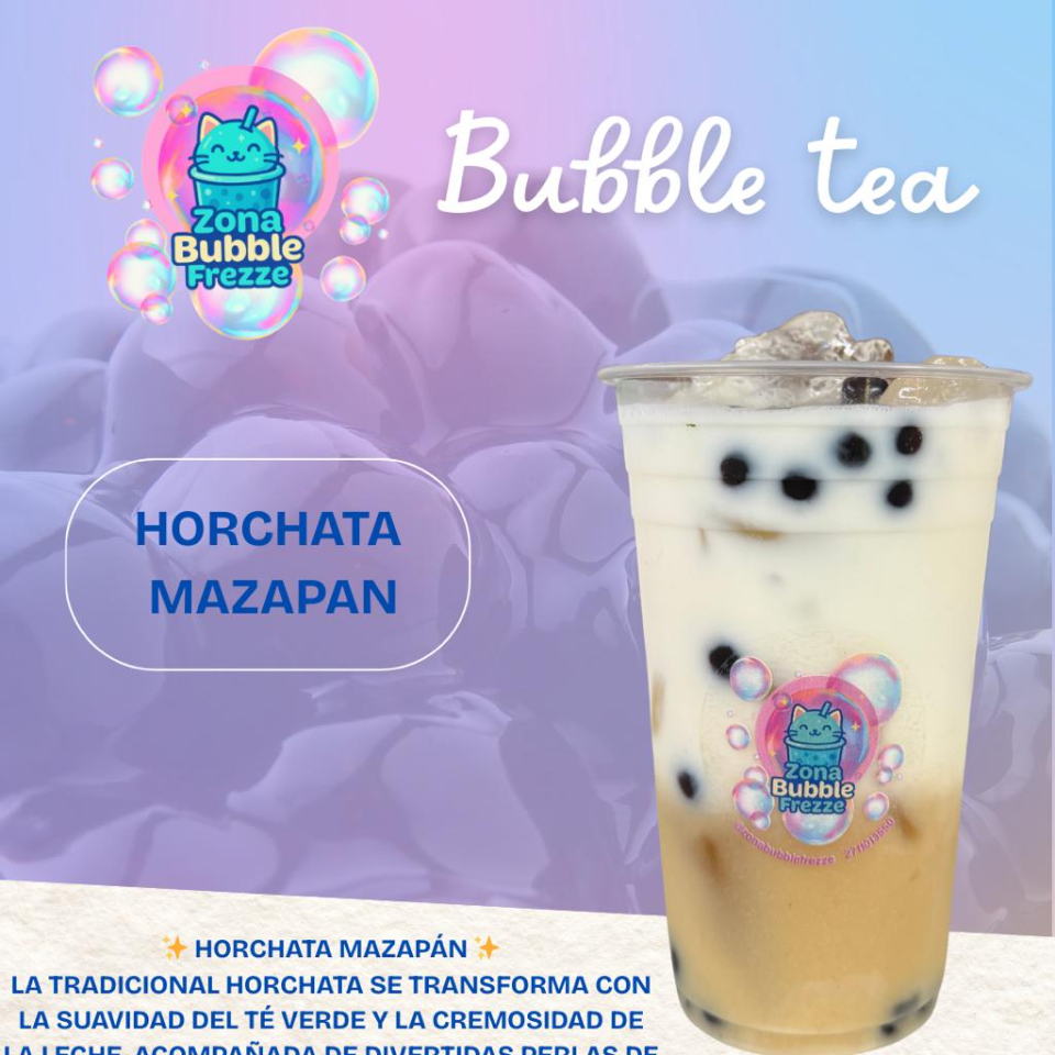 La tradicional horchata se trasforma con la suavidad del te verde y la cremosidad de la leche acompañada de divertidas perlas de tapioca con un toque de boronas de mazapán que te dan un sabor único