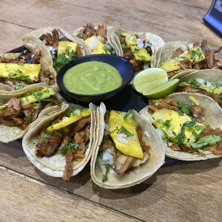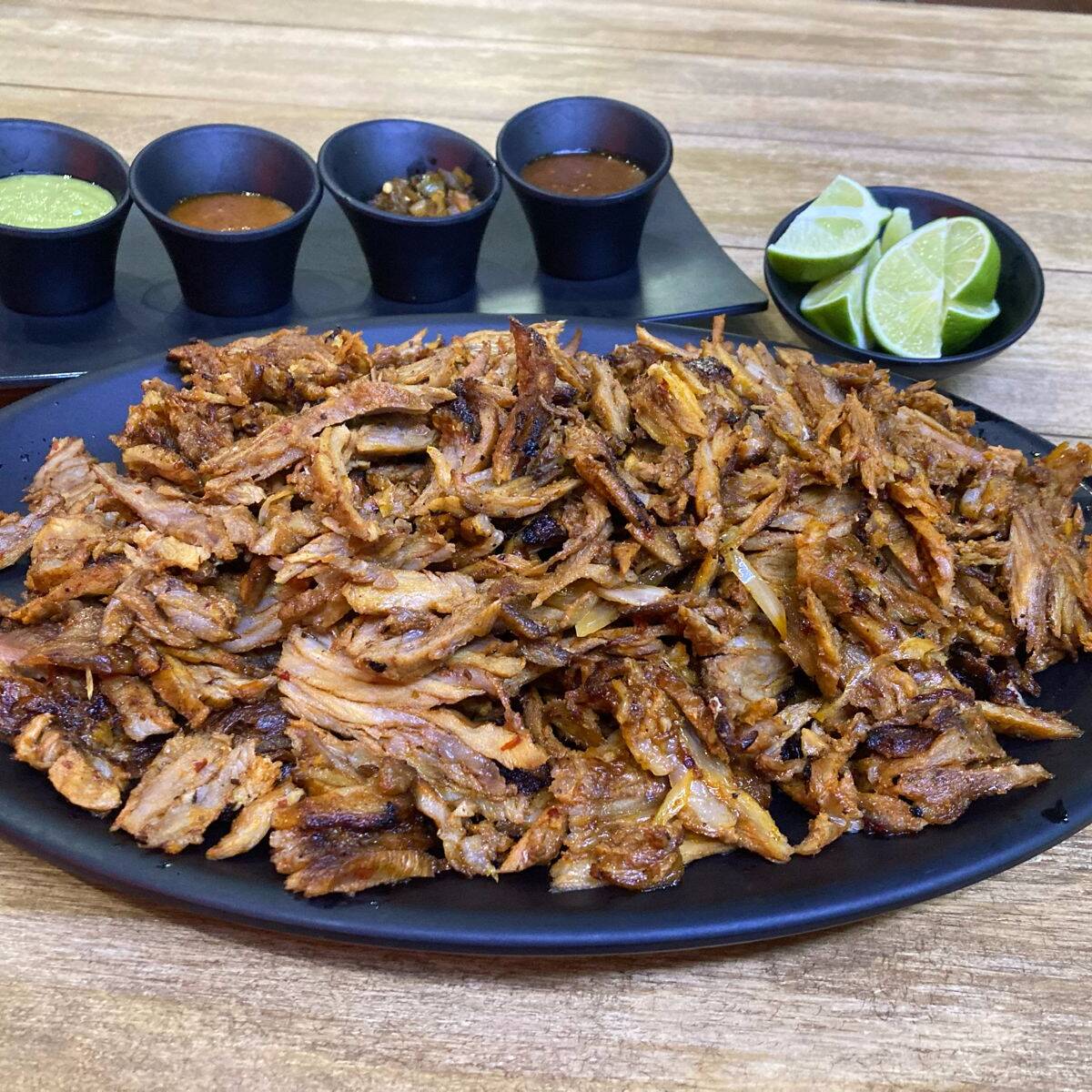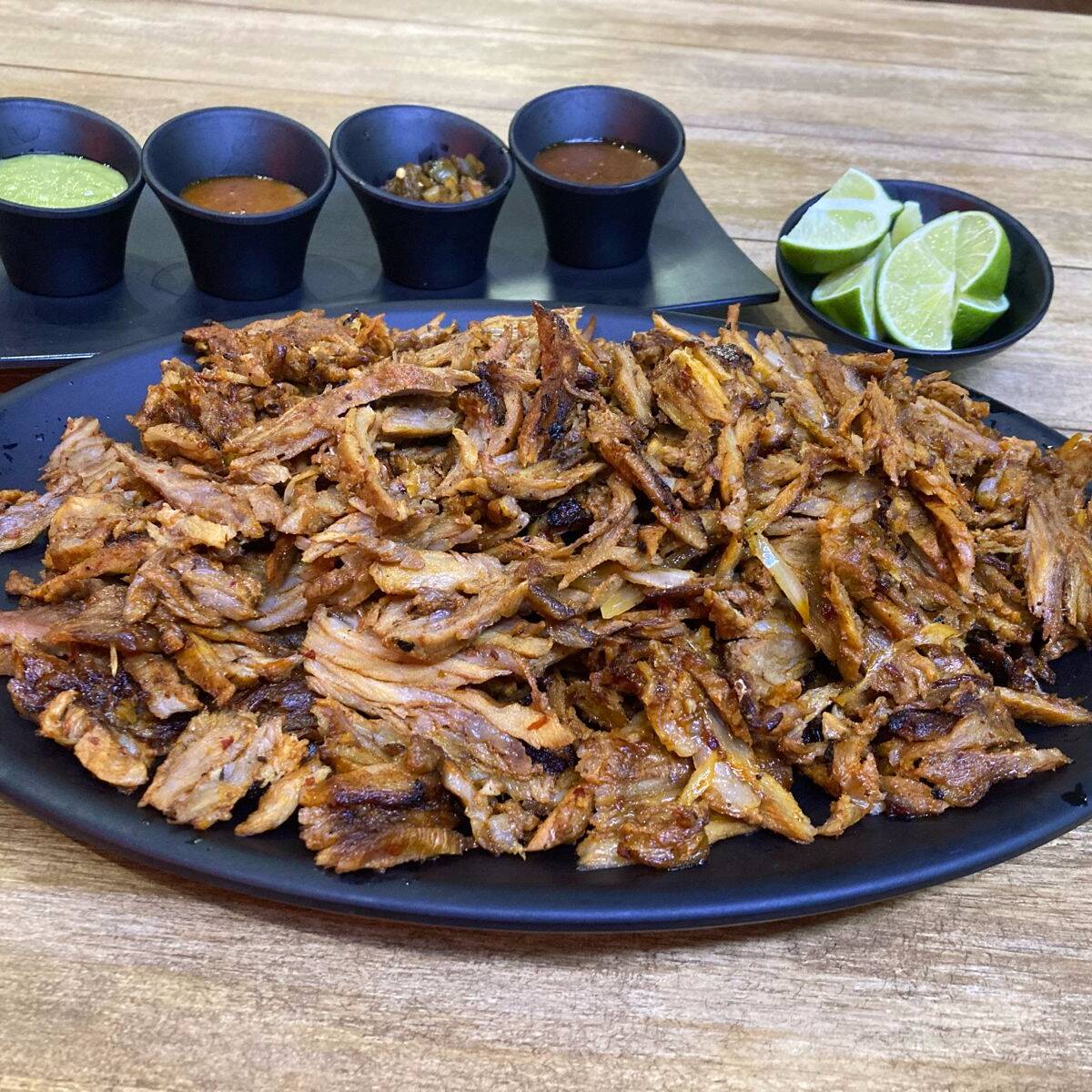 500 gramos (en crudo) de nuestro delicioso pastor para compartir con la familia y amigos acompañado de tortillas, salsas y limones, para 2 personas aprox