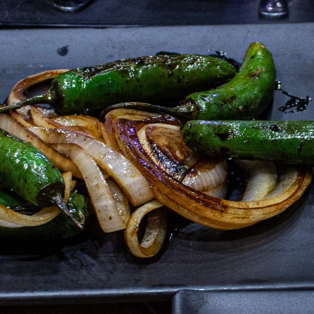 Chiles serranos y cebollas asados para acompañar tus tacos