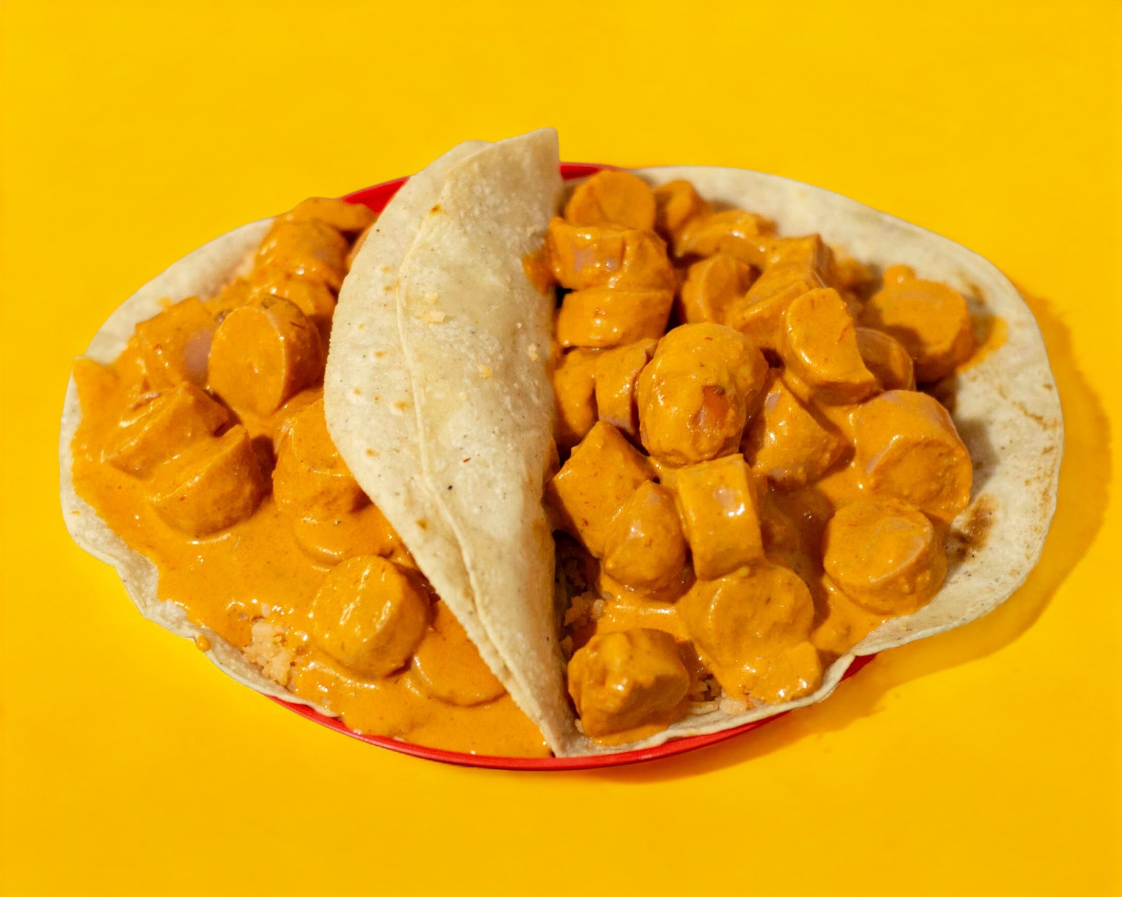 2 Tortillas Echas a Mano, Con Arroz, Salchichas Cocinadas con Crema y un Toque de Chipotle