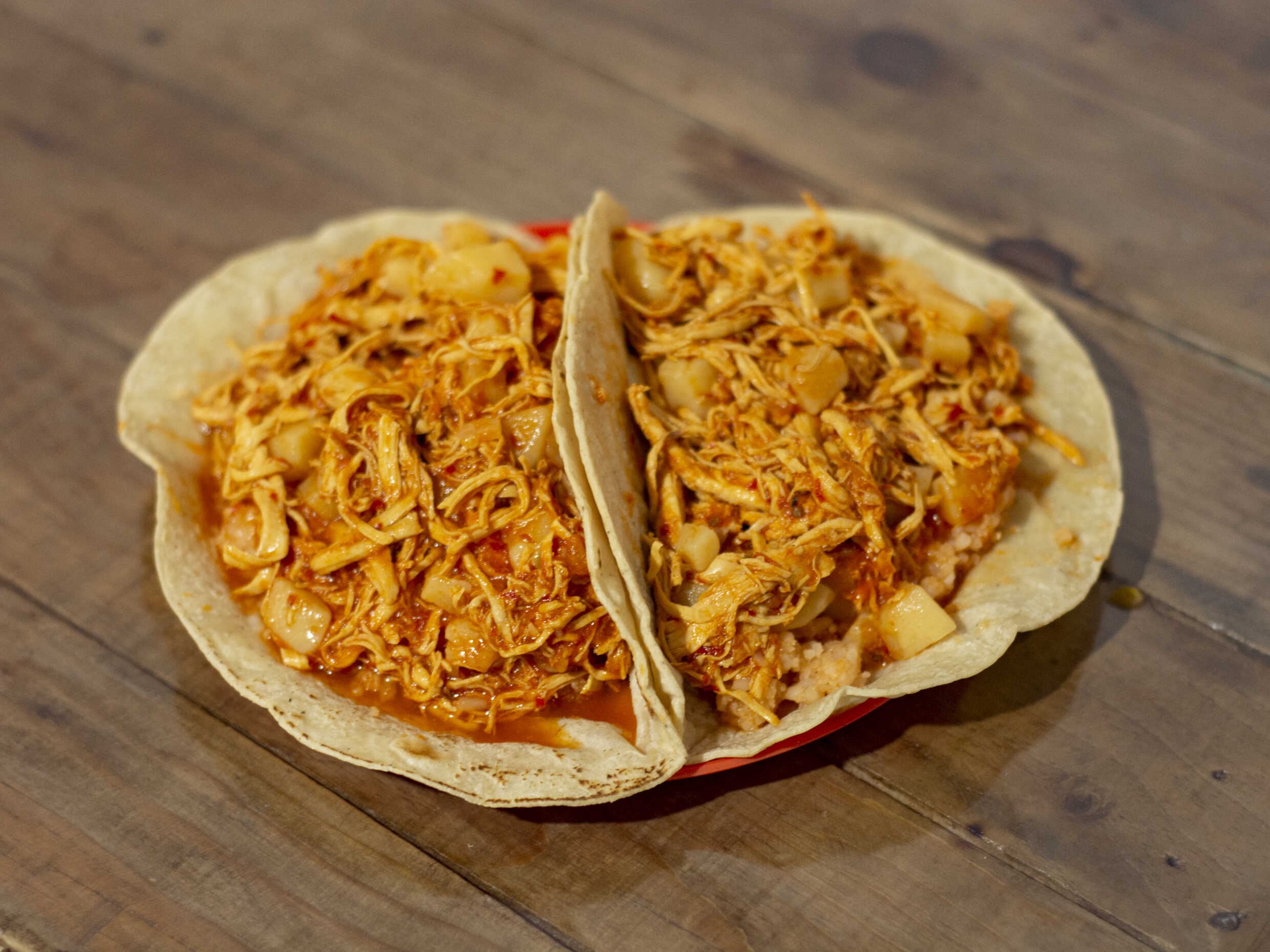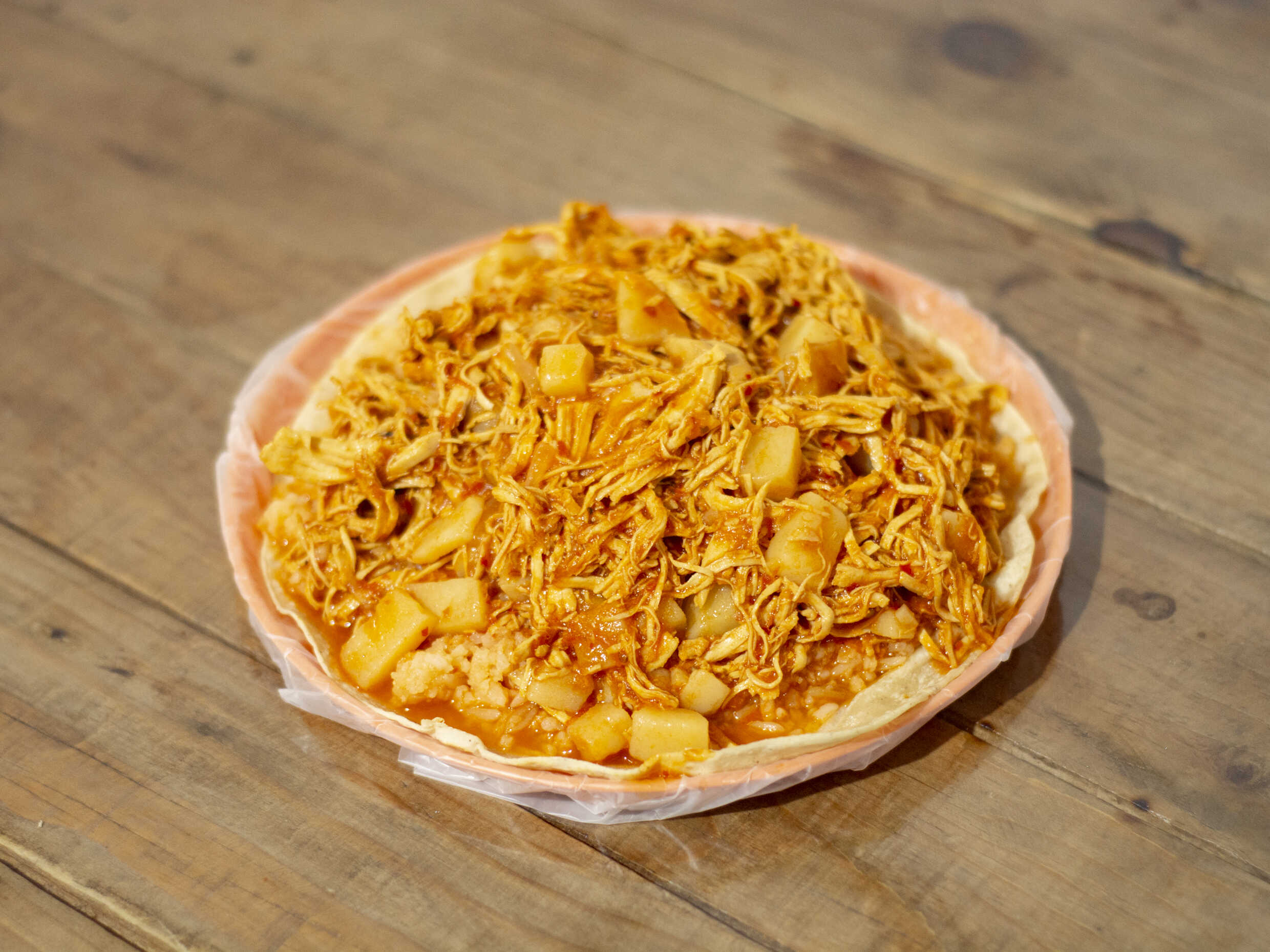 2 Tortillas Echas a Mano, Con Arroz, Tinga de Pollo Cocinada con Papas y un Toque de Chipotle