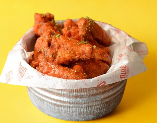 NUEVE DE NUESTRAS DELICIOSAS, FAMOSAS Y CRUJIENTES ALITAS. PÍDELAS CON CUALQUIERA DE NUESTRAS 16 SALSAS. (1 SALSA A ELEGIR).