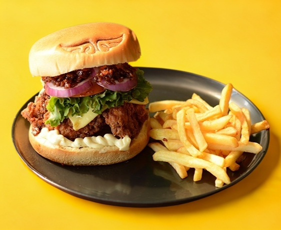 PAN BRIOCHE, MAYONESA, POLLO ESTILO CRUNCHY, QUESO MANCHEGO, LECHUGA, JITOMATE, CEBOLLA MORADA, PEPINILLOS, JALAPEÑOS, ACOMPAÑADA DE PAPAS A LA FRANCESA.
