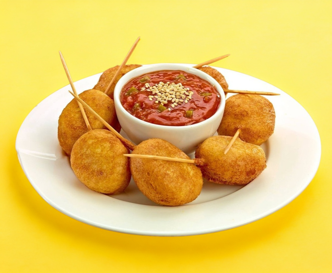 BANDERILLAS DE SALCHICHA REBOSADAS EN NUESTRO MASA ESPECIAL SÚPER ESPONJOSAS. CON PAPAS A LA FRANCESA