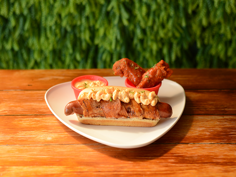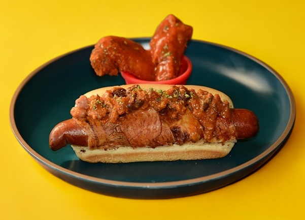 HOT DOG JUMBO, CON UNA DELICIOSA SALCHICHA ESTILO POLACO DE RES, MAYONESA ESPECIAL Y TODO EL SABOR DE NUESTRO INCREÍBLE CHILLY BEANS. UN CLÁSICO GRINGO PARA PERSONAS CONOCEDORAS Y DOS ALITAS CON NUESTRA SALSA ORIGINAL